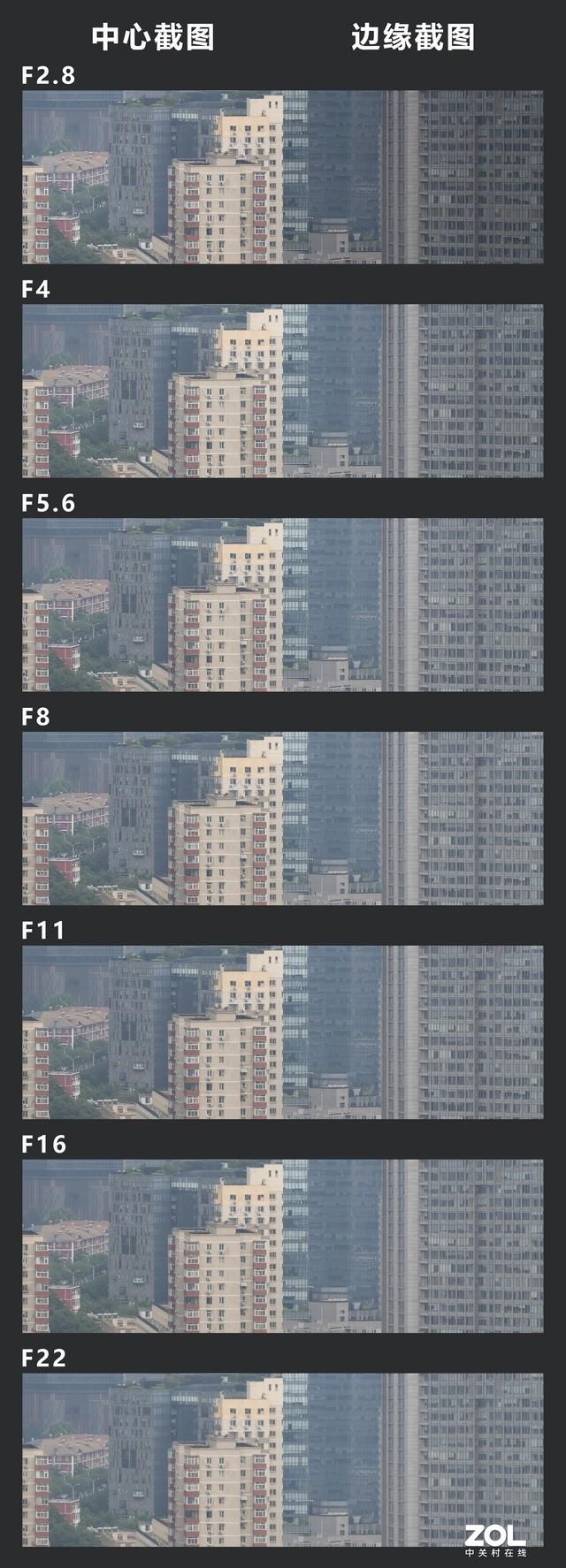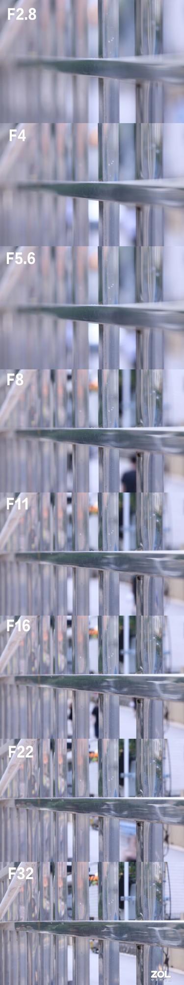 35mm端 从左到右为F4、F5.6、F8