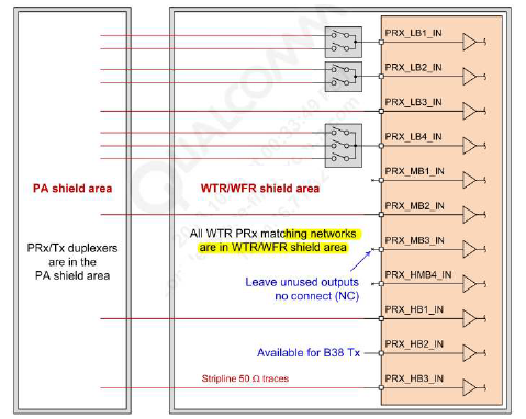 而PA输入端的匹配电路,其摆放位置需依平台而定,例如若为MTK的MT6252,则需靠近收发器,但若为高通的WTR1605L,则需靠近PA。