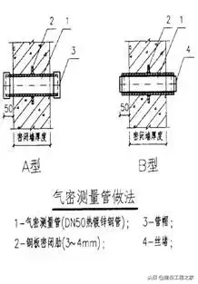 1、各人员出入口和连通口的防护密闭门门框墙、密闭门门框墙上均应预埋4-6根备用管,管径为50-80mm,管壁厚度≥2.5mm的热镀锌钢管,并应符合防护密闭要求。
