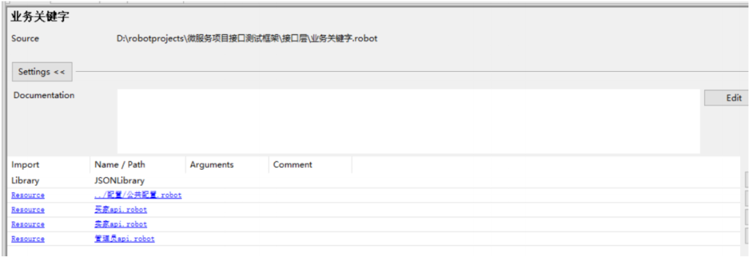 由于各个服务在测试时都必须先完成登录获取token,所以我们将各个服务的登录做成关键字 在业务关键字.robot下进行依次创建和封装