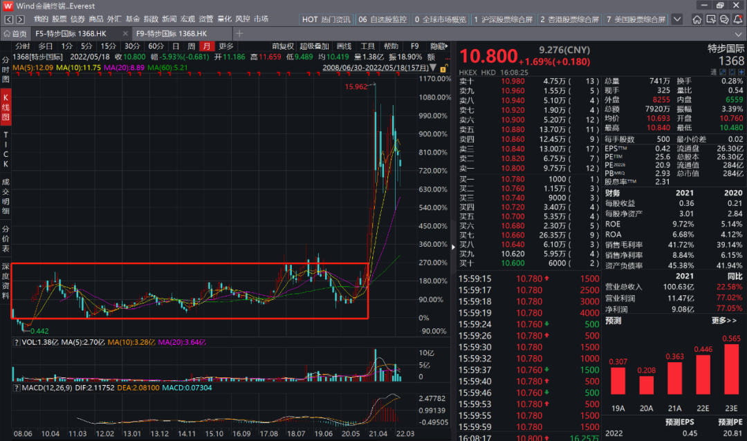2021年对于 特步国际 ( HK:01368 )来说是收获满满的一年:公司营收突破百亿大关,坐稳国内运动鞋服的第三把交椅,吃到了“国潮”大环境的红利,成功入选了MSCI中国指数,股价突破上市后横盘多年的颓势。