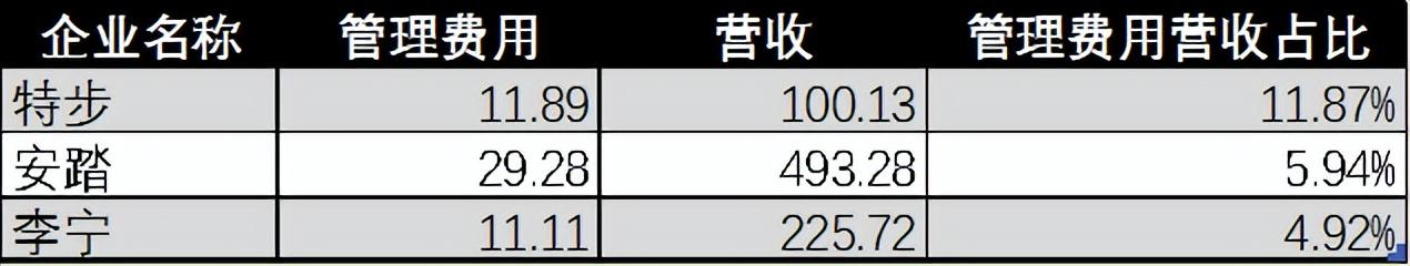 如果家族企业的管理效率高,那么外界也无话可说,反之,则应该多考虑考虑职业经理人的引入。管理效率直接可见于利润表里的管理费用率, 特步的管理费率是安踏和李宁的两倍之多。