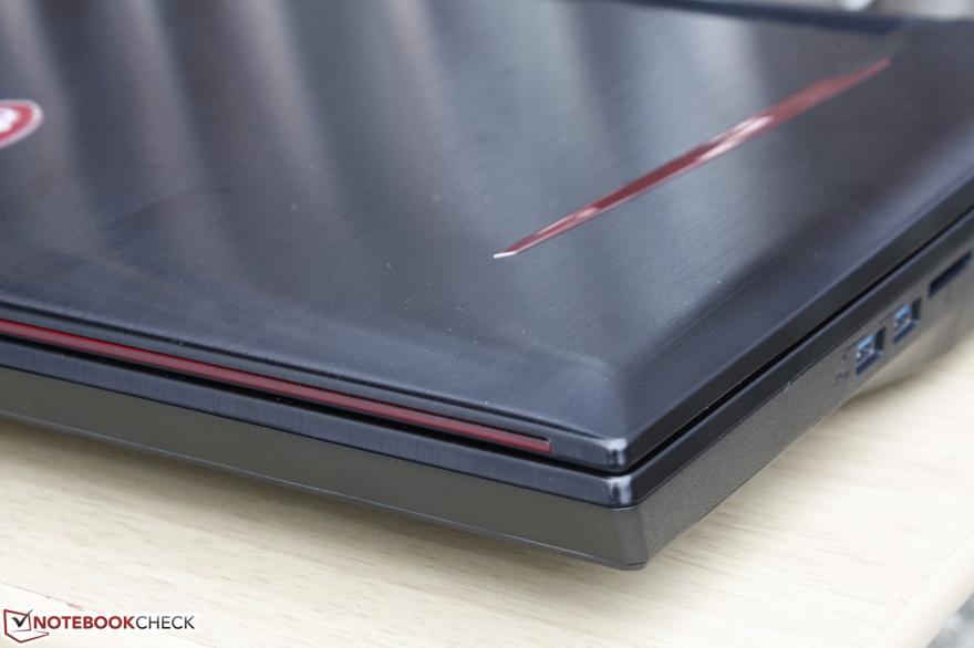 对于一台用来替代主机的笔记本来说,我们对它的外观没什么好抱怨的,这台17英寸游戏本,是目前市面上最重也最厚的笔记本之一,不过华硕的 G752系列还要比这台更大更重。微星在运用机身内部空间方面做得很好,并且机身整体的硬度也非常高,即便你摇晃屏幕,外壳也并不会出现很明显的弯曲。