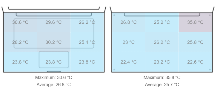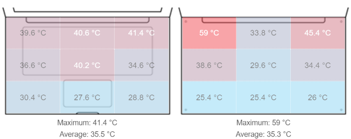 (满负荷运转发热情况,左为机身正面,右为机身背面)