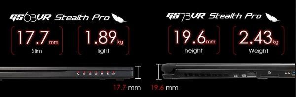 GS73V R7RE 和 GS63VR 7RF 两款新品都采用新的 MAX-Q 设计,比之前更轻薄,其中,GS73VR R7RE 拥有17.3英寸,机身尺寸 411.8x284.9x19.6mm ,重 2.43kg , GS63VR 7RF 拥有 15.6 英寸机身,尺寸为 380x 249x17.7mm ,重仅 1.8kg ,相比市场同类产品要轻薄许多,官方表示这是全球最薄的 GTX 1070 游戏笔电。