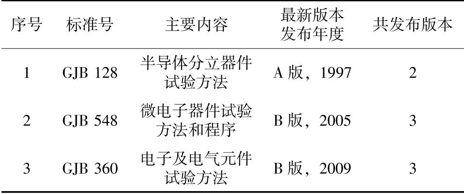 表2 国军标重大标准最新版及更新版次情况