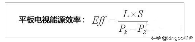 Eff是平板电视的能源效率; Pk是上电状态下的功耗; Ps是信号处理能耗,使用模拟RF和YpbPr端口输入时为10W,使用数字RF端口输入时为17W。 L是平均屏幕亮度; S是屏幕的有效发光面积。在公式的右侧,(L×S)可以看作是屏幕发出的光的总量,以cd为单位; (Pk-Ps)可以认为是以W为单位的有用的发光功耗。