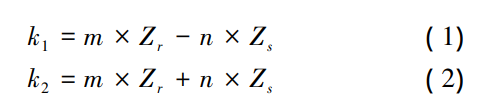 式中,k1和k2为压力脉动振型节径数;Zr为转轮叶片数;Zs为活动导叶数;m、n为任意正整数。k值有正负,正表示压力脉动模态旋转方向与转轮旋转方向相同,负则相反。