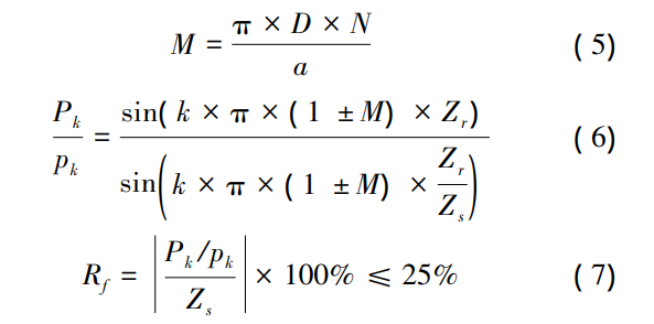 式中,M为周向马赫数;D为蜗壳平均直径;N为转轮的转速;a为波速;Pk为蜗壳两端叠加后的波的幅值;pk为导叶通道内单个波的幅值;k为转轮叶片过流频率的整倍数;Zr为转轮叶片数;Zs为导叶数。