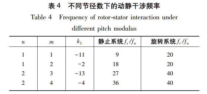 TANAKA在1990年首次详细论述了水泵水轮机动静干涉,并在研究报告中给出了动静叶片干涉的振动频率和模态,之后KUBOTA等对公式进行了进一步推导,得出动静干涉引起的压力脉动具有低阶和高阶两种水力激振模态,最小和最大节径数分别表示为