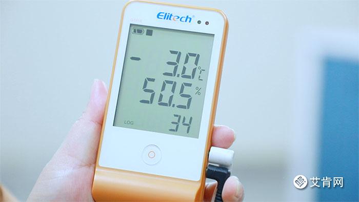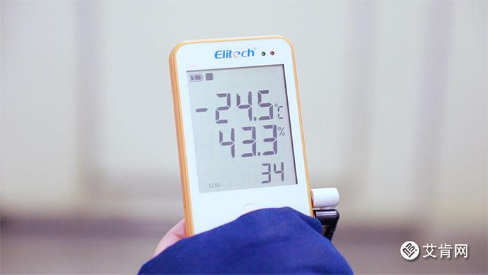 测试最初,机器处于停止运行状态,艾肯网评测人员先测试了海尔低温实验室的环境温度,结果显示,在-24.5℃,实验室地面已经结冰。这个温度对于大部分北方地区冬天来说,已是极端天气。