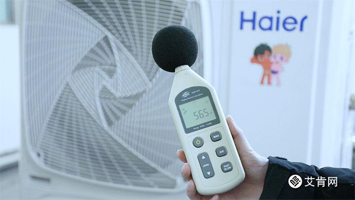 在机器正常运转时,我们也对机器的运转噪音进行了测试,噪音测试仪放在了运转的机器前方,模拟实际情况下的主机运转噪音。结果显示,在实验室里机器正常运转时,艾肯网评测测得的噪音值为56.5dB。