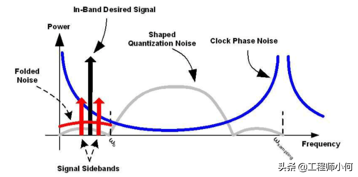 而由下图可知,Phase Noise大,会提升讯号的Noise Floor,意即信噪比会下降,