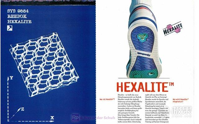 不同于 Nike 的一体式气垫,Hexalite 气垫采用了紧密的六边形结构,这种结构能把冲击力分散到每一个六边形,达到更好的缓震效果,而且酷似蜂巢的结果也更加稳定,Hexalite 在国内也因此被大家昵称为“蜂巢气垫”。(这种科技随后也被 Nike 借鉴,使用在了 Lebron 系列的篮球鞋上。)
