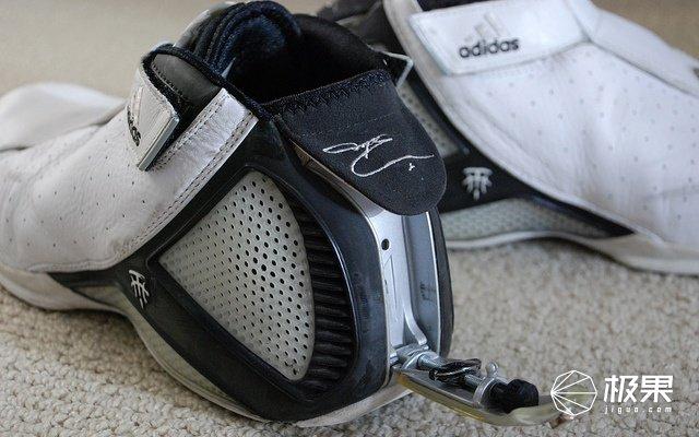 04 年阿迪达斯赠送给麦迪改嫁火箭队的嫁妆,就是这款用了 HUG 束紧技术的 T-Mac 4 代;T-Mac 4 代不需要系鞋带,只需要穿上鞋后把后跟处的搭扣拉直即可束紧;这在当时的篮球鞋技术上可以说是一次极为大胆的尝试。