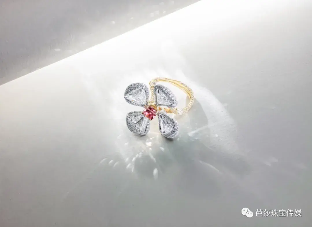 而 Cindy Chao 给我们的答案显然是超乎想象的满意,在博物馆典藏级艺术创作及精湛珠宝工艺的演绎下,12 颗深具增值潜力的粉钻更显其金贵价值。 Cindy Chao 的作品大多数是冲击力极强的大 Piece,而这次的传奇粉钻 Pink Legacy 系列全部控制在 2×2 厘米的空间内。