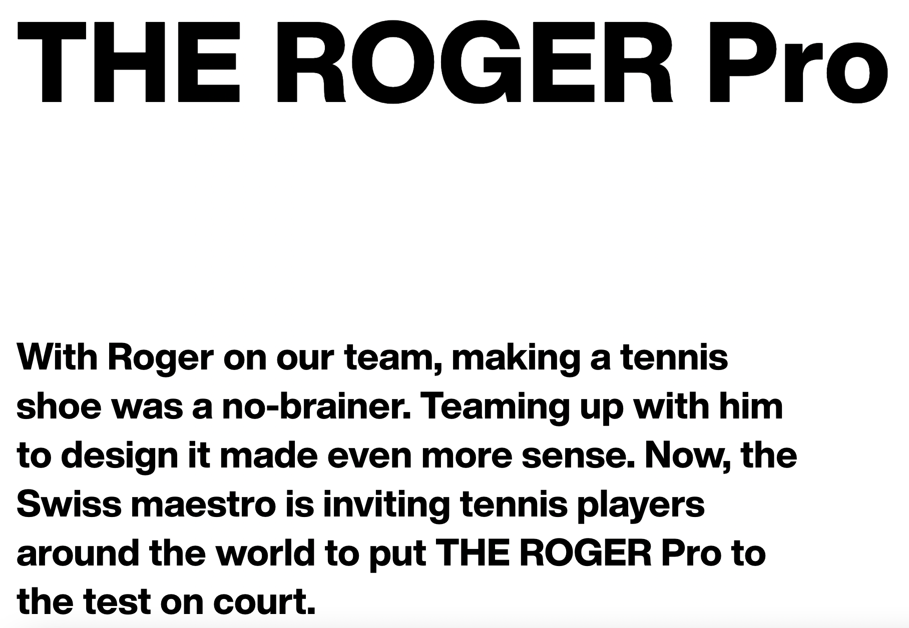 所以,当网球巨星开始跟On合作的时候,大家总有一丝即合理又不合理的感觉。说合理是因为同是瑞士人,相互抱团支持,本来就是不错的事情。而且说实话On在品牌营销方面做得质感还是很不错的,一点都不给国宝一样的Roger Federer丢人。说不合理呢,首先是因为球王身份,照道理应该被大财团瓜分才对。其次是作为网球运动的Roger Federer跟一个专门做跑鞋的牌子,也似乎有点不搭界。但跟Roger Federer的合作系列,倒也写得清清楚楚,是网球鞋。