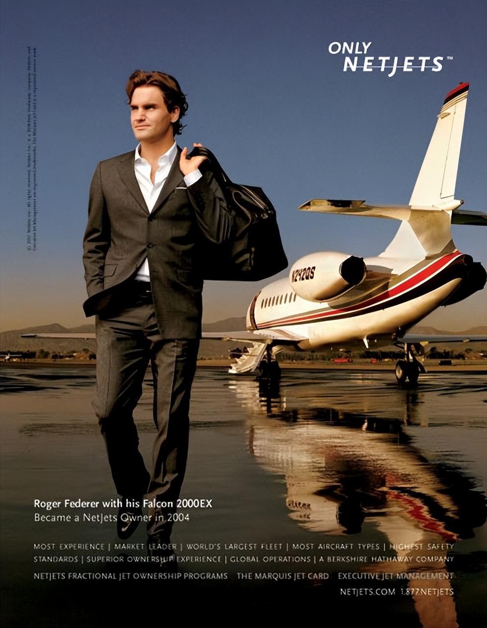 早在2004年,Federer就在NetJets拥有了自己的私人飞机,并且成为品牌代言人直到今天。