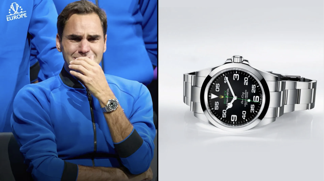这次Laver Cup的谢幕秀,球王哭得稀里哗啦,像一个宝宝,连带着坐在下面的老对手纳达尔也哭得不要不要的。在这么重要的场合,劳力士一定不能少,这次Federer戴的是新款的Air King。表真的是好表,曾经也试戴过老款的Air King,只是现在到处都买不到的局促,真的让人很困扰。