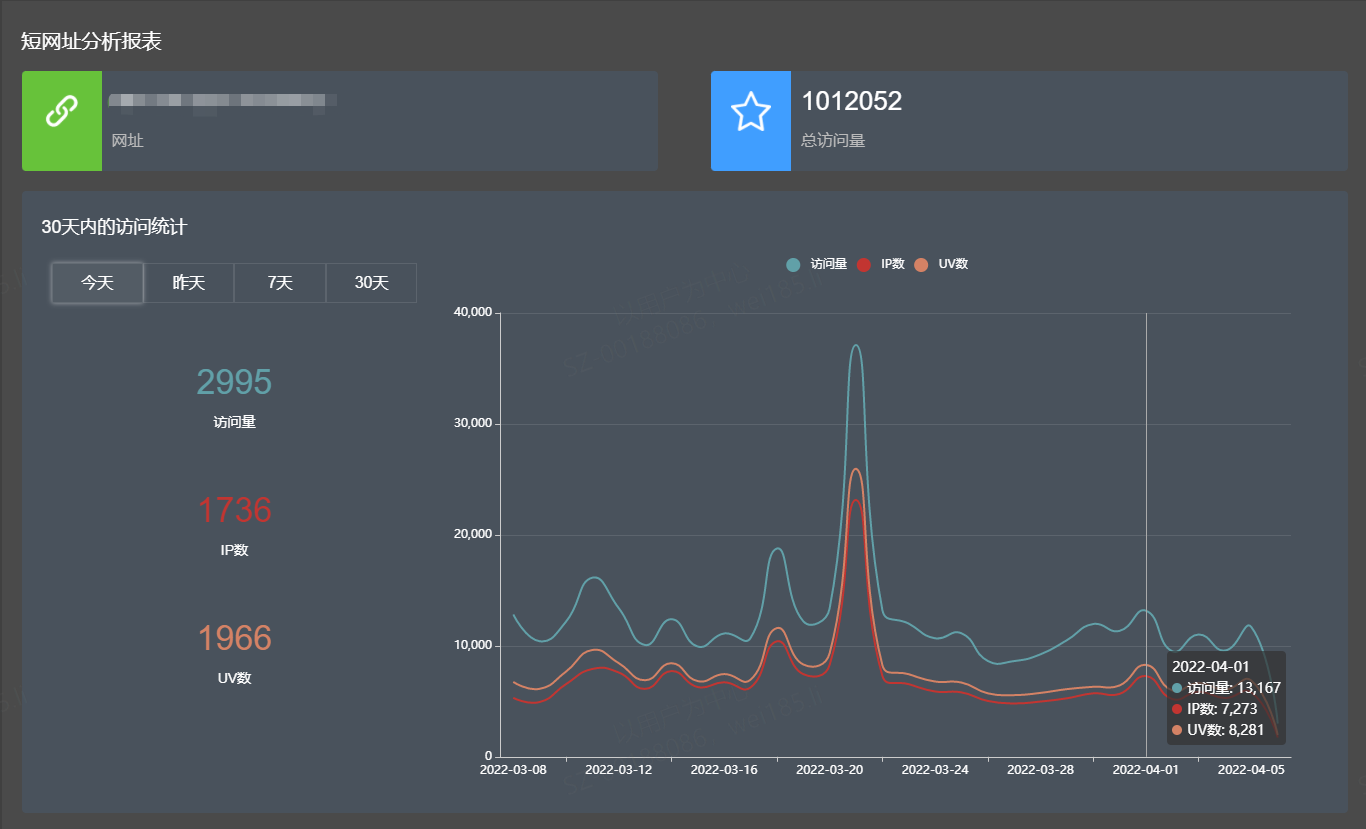C1N短网址针对短网址的浏览数据有着非常详细的统计。