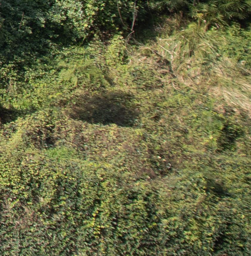 虽然在设计上已经做了诸多的优化,但变焦镜头的像差校正依然是很难做到均衡,轴向色差方面,在放大观看情况下依然是肉眼可见的前紫后绿,特别是比较重点考察轴向色差的长焦端全开: