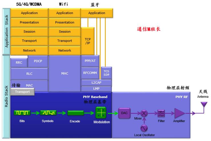 实际上,图7显示的通信系统只适用于系统的一部分(物理层 ),只有非常简单的通信系统才能从这种结构中建立起来。在大多数日常生活中使用的通信系统中,结构要复杂得多。在大多数通信系统中,许多其他复杂的层 位于物理层 的顶部,如下图8。图8中的每一个模块都需要大量的工程师来进行研究、开发和测试,这个完整的结构构成了一个庞大的行业。