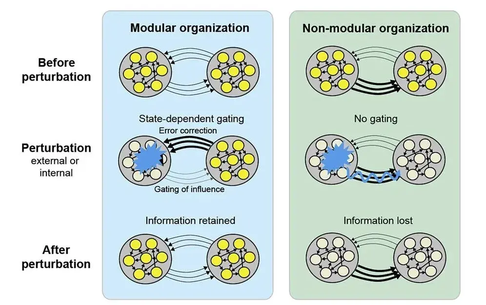▲独立的模块化组织,保障了在有局部扰动的情况下还能保持记忆的连贯(图片来源:参考资料[1])