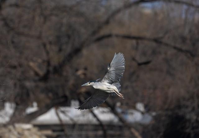 我们对飞行中的夜鹭进行高速连拍,得益于强大的对焦系统,从夜鹭进入画面后焦点就始终锁定在鸟眼部位,我们只需要按住快门不放并跟随鸟类的飞行轨迹移动就可以了。即使后来背景变得复杂了,对焦系统也没有受到干扰,每一帧画面都精确对焦于夜鹭的眼部。