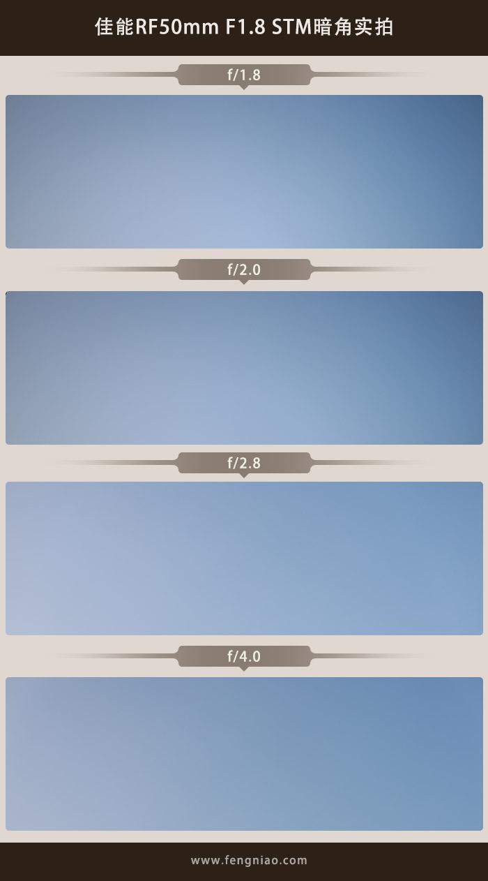 作为50mm F1.8的镜头,这枚镜头的暗角控制较为不错,全开时有轻微的暗角,收缩光圈到F2.8后暗角即消失。