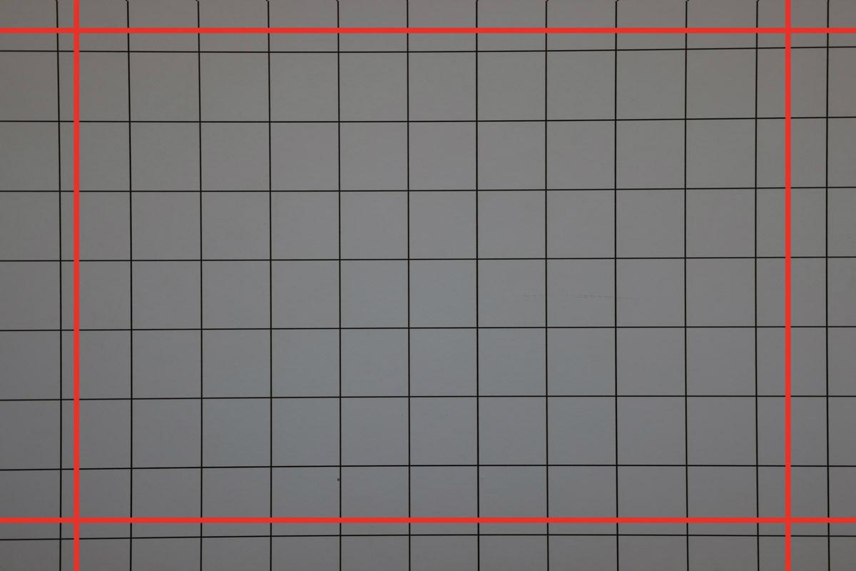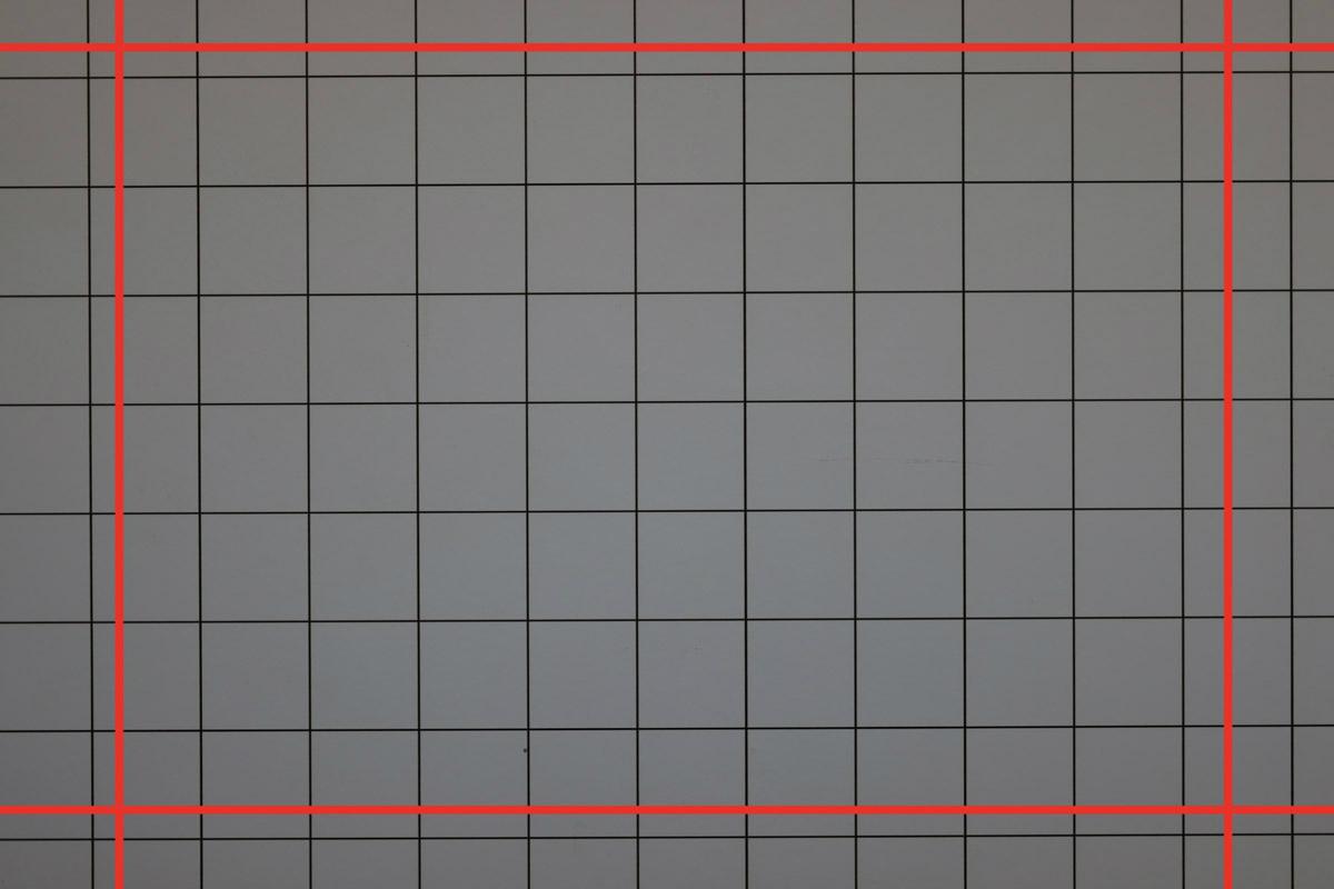 首先来看畸变表现,畸变分为桶形和枕形两种,当拍摄一些线条物体时最为明显,相对来说广角镜头更容易产生难以校正的变形,而中长焦镜头控制起来就容易的多,我们关闭机身的矫正功能进行拍摄,可以看到,佳能RF85mm F2 MACRO IS STM这支镜头只出现了轻微的枕形畸变,如果不是加以辅助线对比观察,基本无法察觉畸变,打开机身矫正后则畸变完全消失。