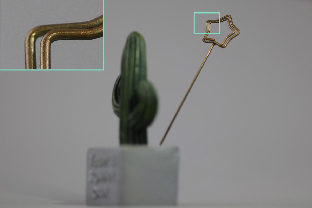 可以看到,这支镜头色散抑制表现很不错,对于金属物体的高光处,没有明显的“紫边”、“绿边”出现,这样的表现,应该说是足以令人满意的。当然对于带微距拍摄功能的镜头来说,由于使用场景决定了景深通常都会比较浅,除了焦内色差,焦外色差也就是轴向色差也非常重要,因此我们也来看一下这支镜头的轴向色差。