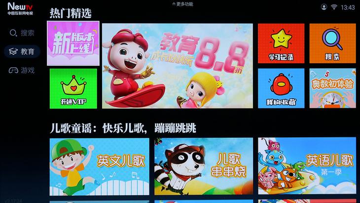除了这些影视内容,这台电视还有大量的教育内容,涵盖孕婴、幼教、小学、中学、职业考试、健康养生等方面,其中大部分都来自义方快乐学堂、智课等70多家知名教育机构,在家也能接受优质教育。此外,创维55S8还有不少游戏娱乐资源,包括家庭K歌功能,通过内置的全民K歌就可以体验在家K歌的乐趣。
