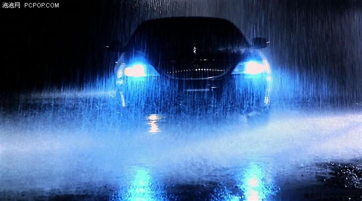 另外一个场景更能则具备更多的亮度信息,在被汽车大灯照亮的雨夜,车体前瓢泼大雨的线条层次分明,车灯以及露面反射的光线亮度饱满,而车灯后方又会将具有亮度信息的雨丝、汽车LOGO以及反光镜处的高光与暗部画面所精确分离表达,这样的屏摄已经足够说明55S9-I对动态范围的强大还原能力了。