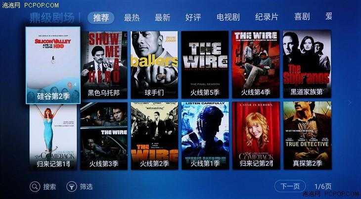 影视方面,创维55S9-I接入牌照方iCNTV,主要视频内容来源于则是腾讯公司的云视听·企鹅、HBO正版影视剧集等。从屏射来看,目前创维55S9-I所更新的内容有火锅英雄、我的特工爷爷、荒野猎人等,内建视频最高清晰度为4K,并且提供了额外的4K内容专区。