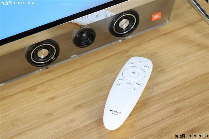 与S9300系列的OLED不同,全新创维55S9-I使用了更为简洁的全新版本遥控器,圆润的造型和按键风格很有居家风味。这个遥控器支持语音交互,针对信号源切换有独立的快捷键设置,而且整体曲线很贴合握持的手势,体验手感非常亲和。