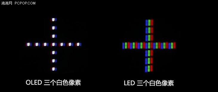 OLED电视的白色是由纯白色发光像素点直接表达的,液晶电视则需要通过RGB三色背光与彩色滤光片共同配合才能发出白色,三原色混合的色彩显示原理注定不如直接发出白色光纯净。此外,如果你仔细查看像素点还会发现OLED对于一像素细线条的辨别和还原远远高于传统液晶LED电视,后者的线条需要由RGB三个子像素完全点亮才能显示白色,而这个线条则把多个像素的RGB完全连接,像素点控制远不如OLED精细。