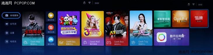 系统方面,尽管看上去依旧是那个我们所熟悉的酷开系统,然而在熟悉的界面中也见证了与上一版本的操控优化提升。搭载于创维55S9-I这套最新的酷开系统界面非常清爽,主界面信息为我们做足了必要精简,但其中又不乏可供自定义的空间。从屏射来看,Geek Max、Geek Edu、Geek mall、Geek Box以及Geek Trip、Geek Pod分别对应着影视、教育、商城、游戏、旅游、音乐的入口,信息量丰富但界面却极为简洁。此外也有创维智能家居以及广告运营的推荐位置。