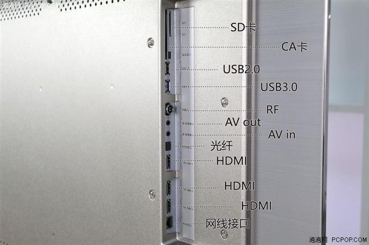 接口方面,创维55S8采用的是常见的“L”型接口布局,侧面是USB、Micro SD卡等使用频次较高的接口,底部的接口包括HDMI、RF输入、视频输入等,非常齐全。