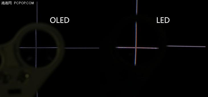 OLED与LED的像素对比图(漏光图的单个十字架区域放大图)
