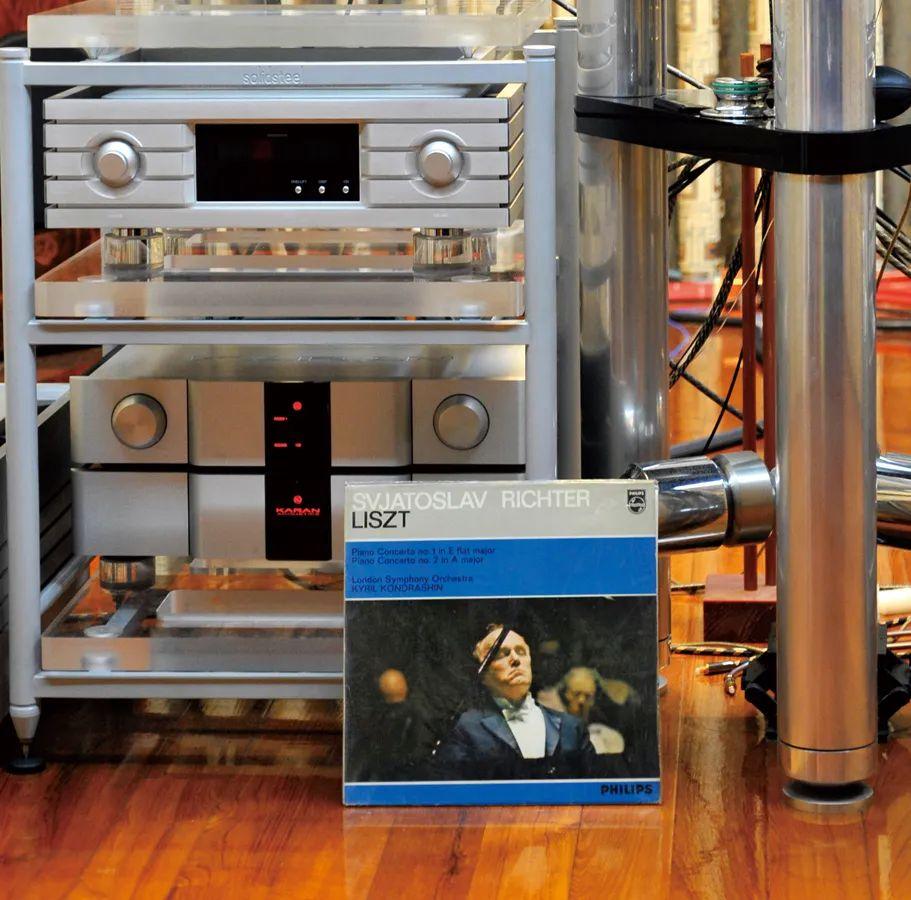 用何先生的大系统来听流行音乐简直就是小菜一碟,我们还是再试试重播古典音乐的效果吧。选来Philips飞利浦出版Svjatoslav Richter里赫特演绎的Liszt李斯特《第一、二钢琴协奏曲》,Philips用的什么均衡曲线呢?答案是标准RIAA,相位是0°。看到这里,黑胶玩家们大概明白了为什么我们平常会觉得Philips的出版素质都特别好听的原因了吧。因为,我们的普通唱放恰好就完美对应RIAA。听这张唱片,一贯的Philips均衡从容、透明细腻的好声音。李斯特的钢琴协奏曲以此版最为权威,里赫特独特的力度与情感的浪漫方式,非常适合演奏李斯特的乐曲。而里赫特和乐团的熟练度形成良好的默契,康德拉辛指挥下的管弦乐井然有序,当钢琴和乐团对同一旋律进行交错演奏时,竟产生了一股迷人的诗意。