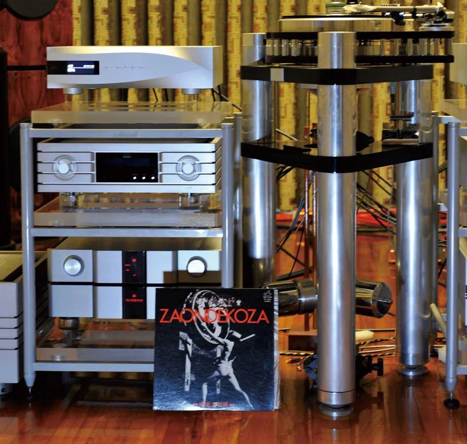 放上Victor出版的《Zaondekoza鬼太鼓座》,这张唱片不但有震撼人心的大太鼓,还有风味独特的“尺八”和“三味线”(三弦)。Victor的出版采用EMI的均衡曲线,相位是180°。1969年,一群醉心日本传统艺术的年轻人于日本佐渡岛成立了鬼太鼓座乐团,刻苦钻研大鼓演奏的技巧,并藉由长跑、瑜珈的锻炼来追求“力”与“美”的极致发挥。用大系统在正确的均衡曲线重播这张简洁、有力的鼓声,足以让人感悟出鼓乐中无可比拟的坚毅的力量。令人窒息的单一节奏的鼓乐敲击动态庞大,且速度起落掌控挥洒从容。除此之外,“三味线”的音质也是颗粒清晰分明,并且每个音乐都洋溢出丰富的泛音,让音乐充满灵性。当切换到标准RIAA时,声音虽然在响但上述的感觉荡然无存,高音变得生硬单薄、低频紧绷没有弹性,貌似一群没有灵魂的人在面前随意演奏,听不到音乐的精彩了,再次印证正确的均衡曲线对重播音乐韵味所起至关重要的作用。