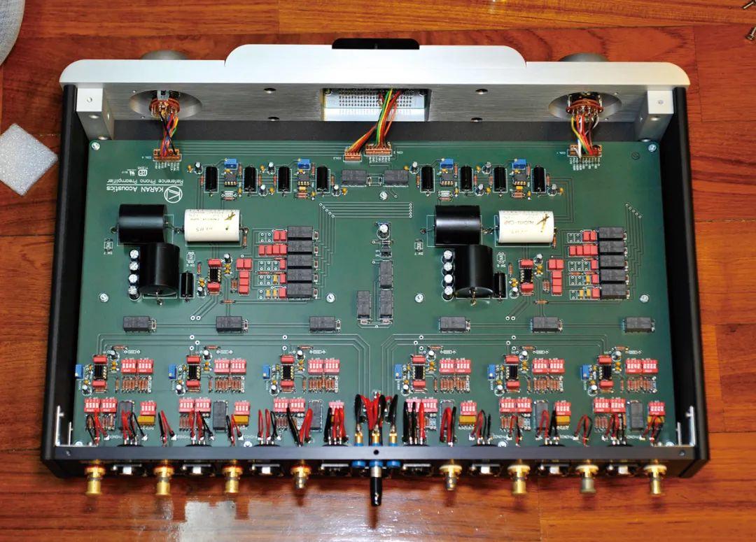 Karan Acoustics一直不甘于平庸放大器技术,开发了一种全新的完全平衡设计,定位为顶级型号的KA PH Reference唱放就是采用这种全平衡设计,没有整体负回输,纯A类放大,DC直接耦合,电源供应要达到最低内阻。设计师Milan Karan表示唱放的设计是因为他们想达到最快的瞬变速度,最低失真,最大的动态余量,最好的分析力,来播放出有音乐感的声音。