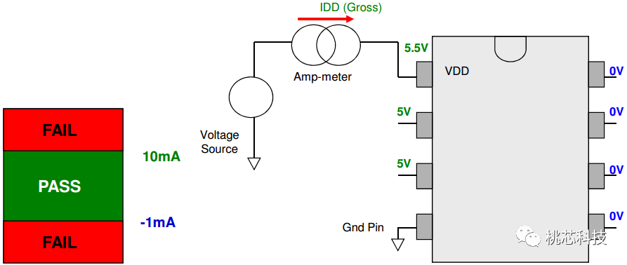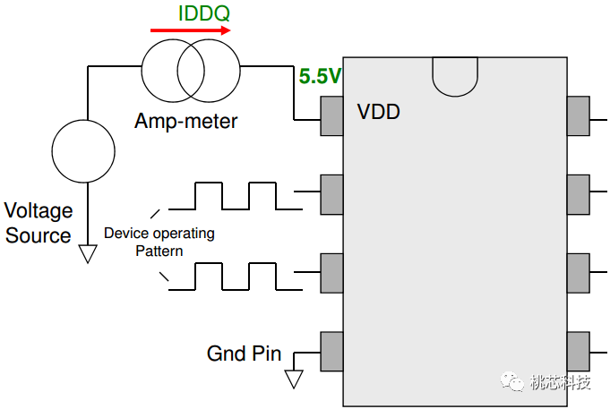 这个项目是测试当芯片在静态或者idle state的情况下,流过VDD的漏电,这个参数对低功耗应用场景特别重要;这项测试也能检测出一些在制造中产生的margin defect,这些defect非常有可能会给芯片带来潜在的可靠性风险。