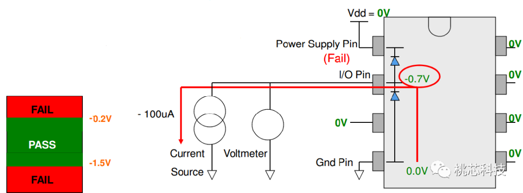 --如果这个在测试的pin有开路的fault,会量测到一个大的正电压。