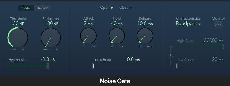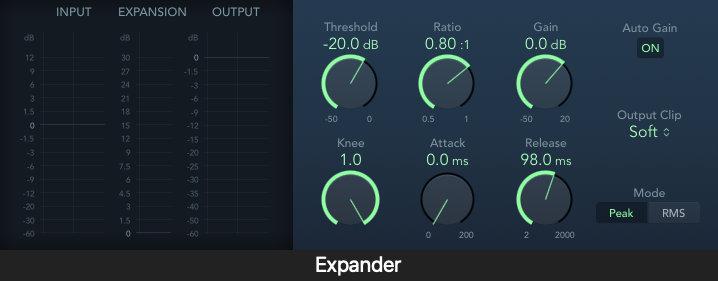 如果您获得了或录制了具有噪声问题的音频文件,其实也有办法补救。事实上,后期制作的主要任务之一就是降噪,而且市面上也有不少出色的工具供您调遣。正如上文所提到的,门限和扩展器可以帮助您降噪,虽然这类方案相对来说比较激进,但是很适合用于某些特定的降噪场景。以下是两款Logic Pro自带的插件: