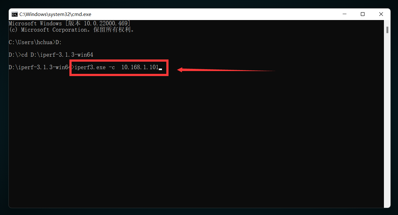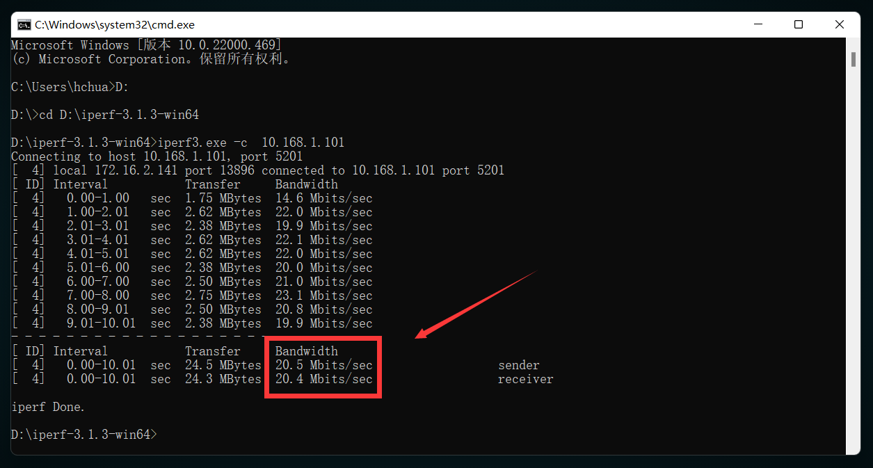 iperf3.exe -c 10.168.1.101