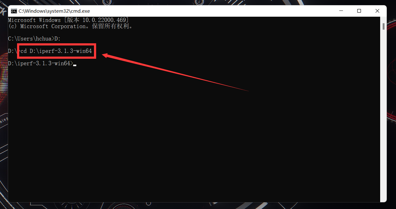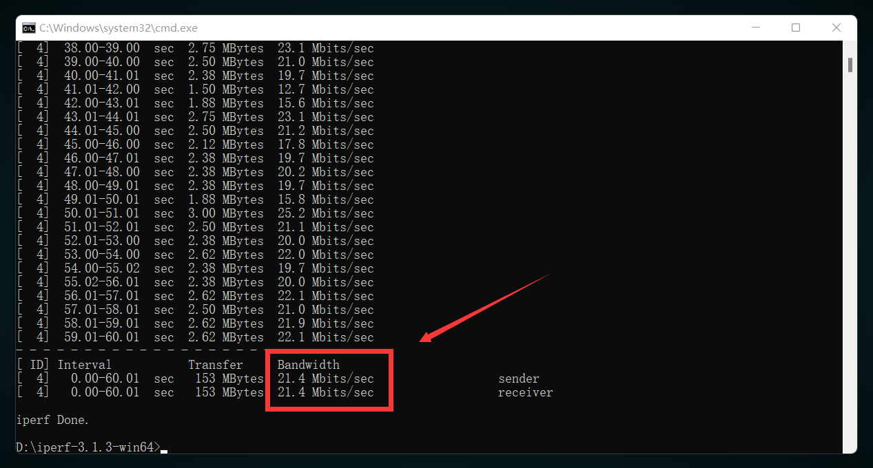 cd D:\iperf-3.1.3-win64