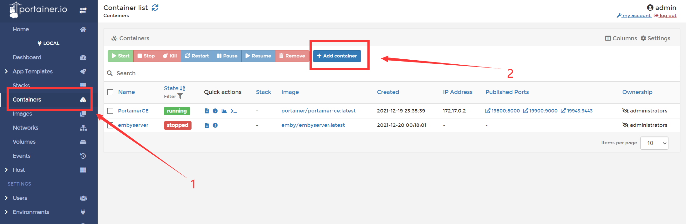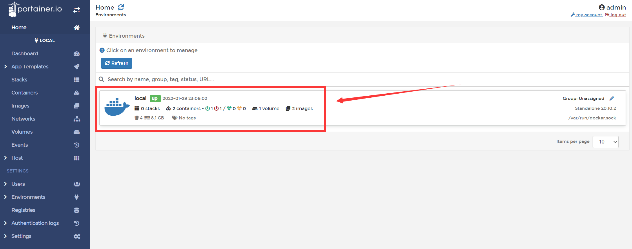 桌面点击Portainer CE,进入后台后点击Local进入docker管理。