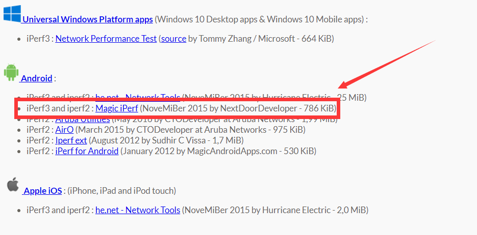 手机下载安装iPerf的客户端Magic iPerf,我只有安卓手机,苹果用户请自行研究下。。。