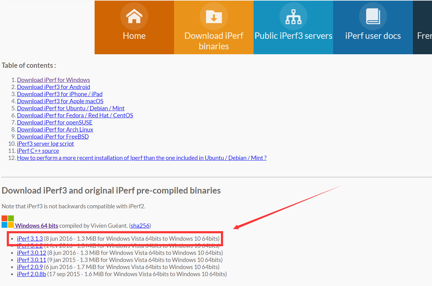 iPerf目前经历了三次迭代,目前主流使用的是iPerf3,下载的时候千万注意不要下载错版本了,双端版本需要保持一致,本文使用的是iPerf3。